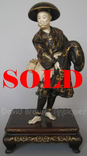 Japanese wood & ivory figure of a fisherman by Miyao, unsigned at David Brower Antiques, London-based dealer in 19th century antiques |